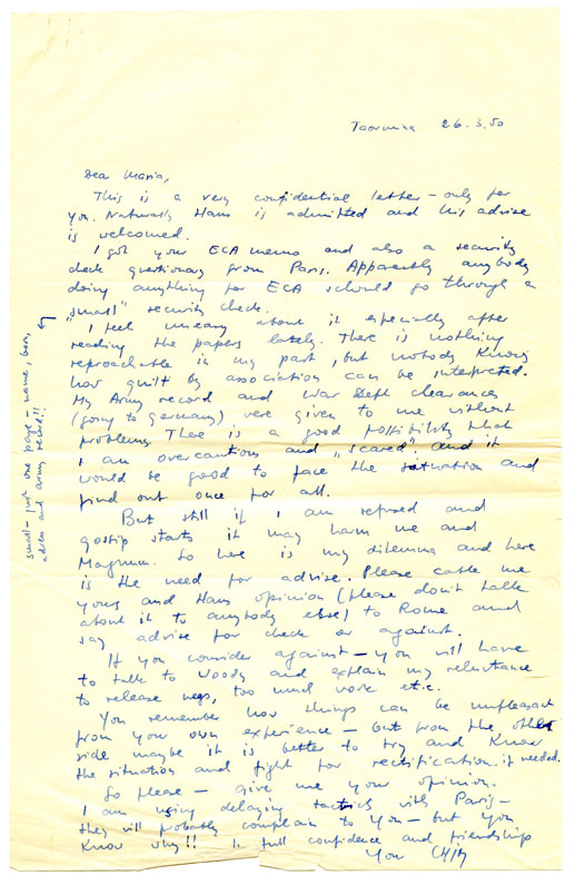 | Letter from CHIM, Taorina, Sicily, to Maria Lehfeldt, March 1950 | Next letter >> | Back >> | |